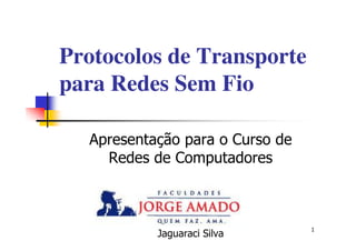 O documento discute os desafios do protocolo TCP em redes sem fio, como maiores taxas de perda de pacotes e variação na latência. Também apresenta soluções como a divisão da conexão entre a parte sem fio e cabeada e otimizações nas camadas de transporte e rede.