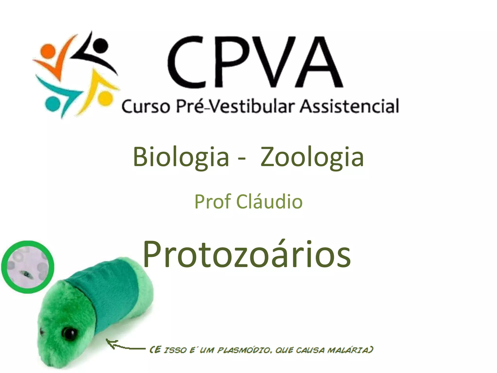 O documento resume as principais características de protozoários, incluindo sua classificação, estruturas, locomoção, reprodução e exemplos de doenças causadas por parasitas como Trypanosoma, Plasmodium e Entamoeba.