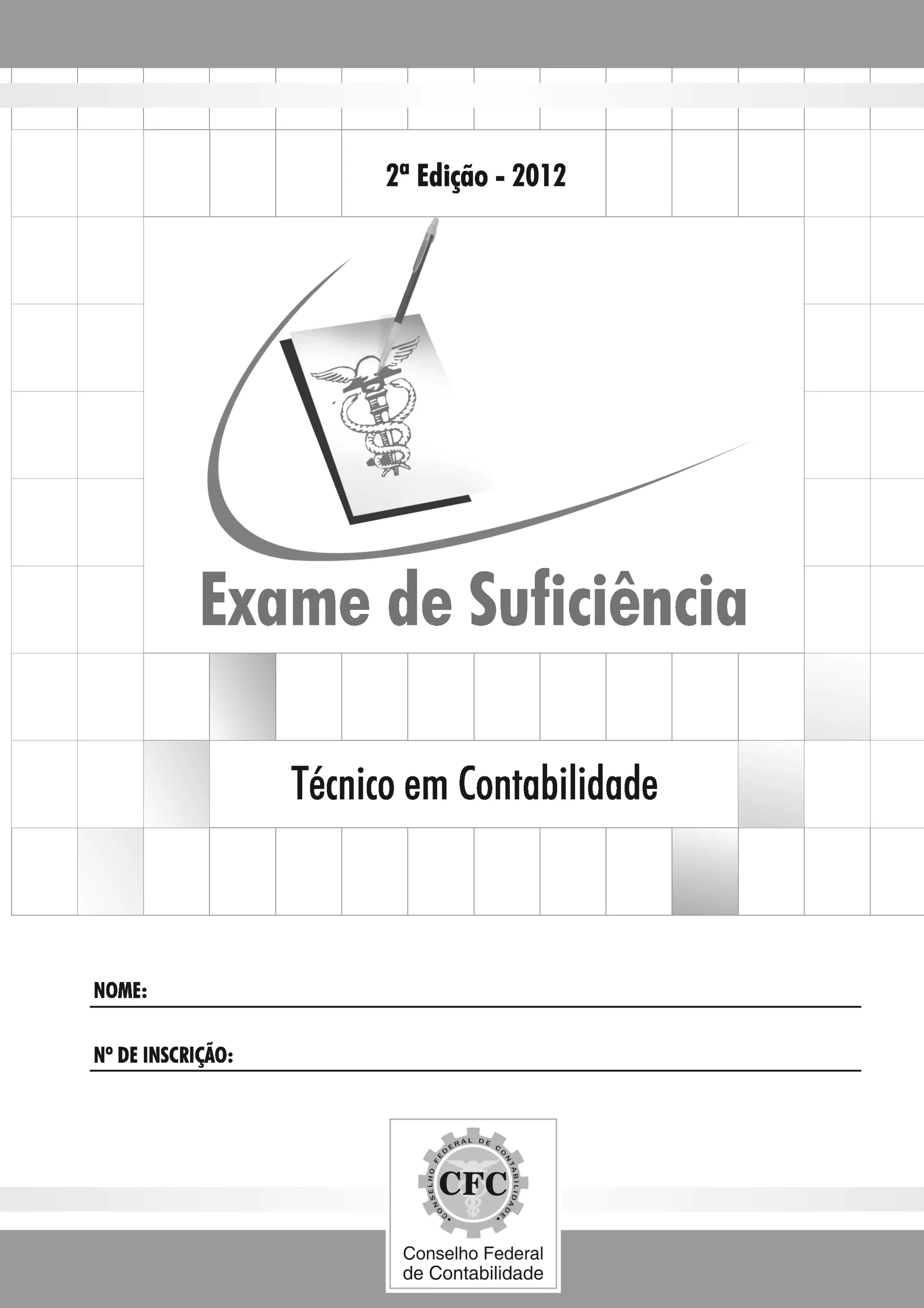 Este documento apresenta instruções para a realização de uma prova de Técnico em Contabilidade do Conselho Federal de Contabilidade. Ele informa sobre o preenchimento do caderno de prova e da folha de respostas, observações sobre a marcação das alternativas, duração da prova e advertências ao candidato.
