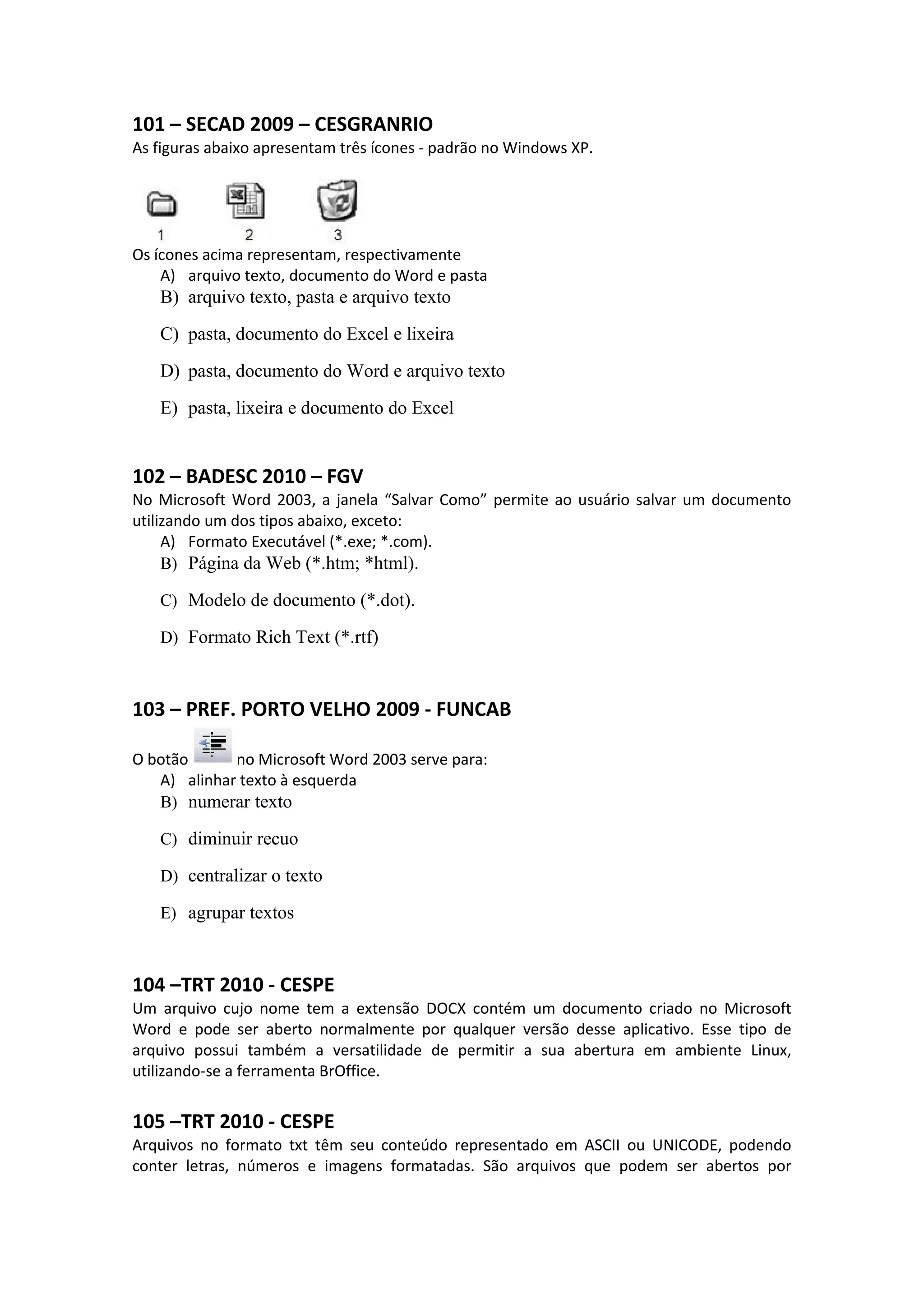 As figuras abaixo apresentam três ícones - padrão no Windows XP.