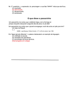 (1) O trecho conta a história de um menino triste chamado Zé que encontra um vigário em uma estrada. (2) Quando o vigário pergunta para onde vai a estrada, Zé responde de forma engraçada que não é a estrada que vai, mas sim eles que vão nela. (3) O trecho apresenta um diálogo cômico entre o menino e o vigário.