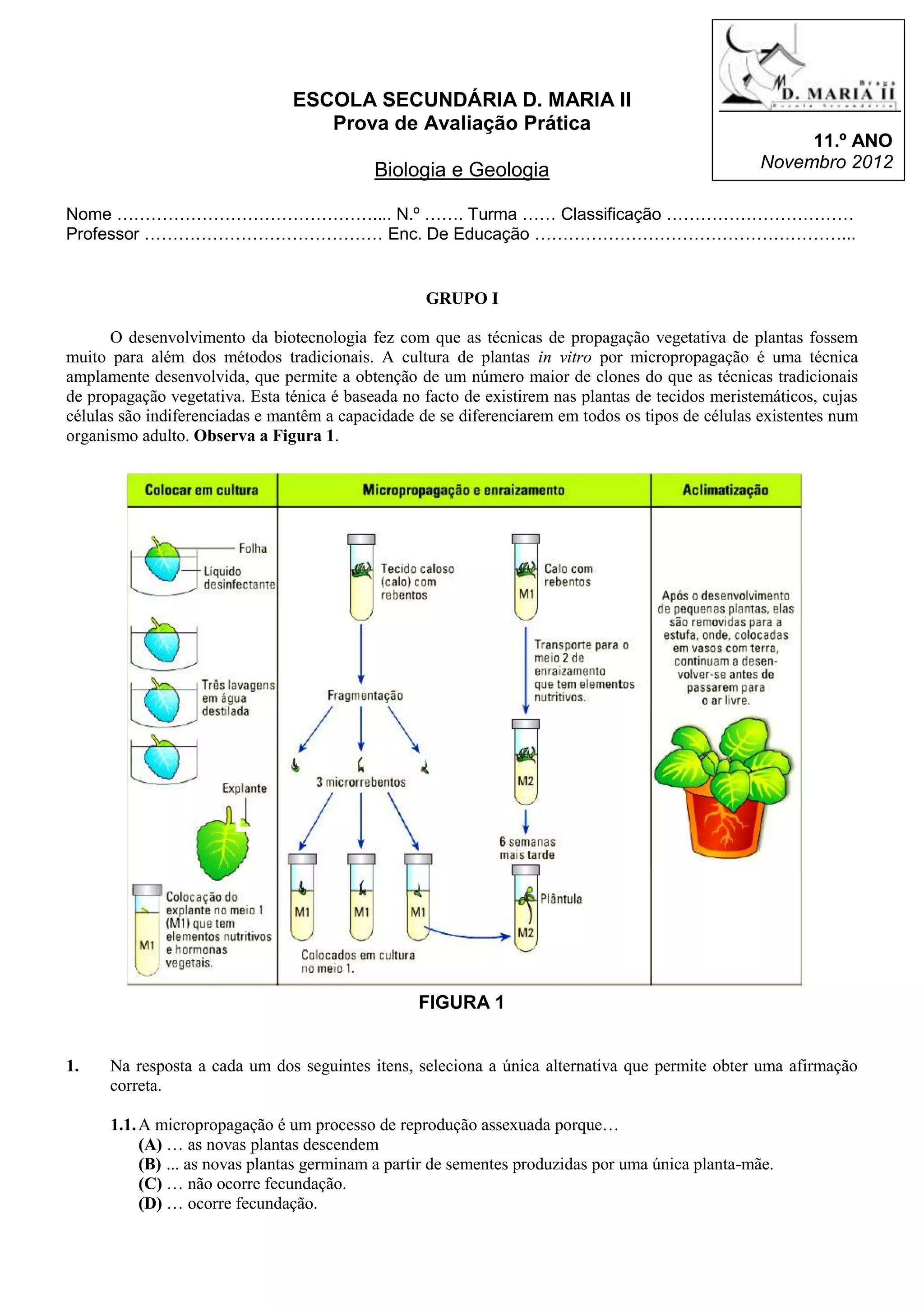 O documento discute a micropropagação de plantas e a reprodução assexuada. A micropropagação envolve cultivar tecidos meristemáticos de plantas em meios nutritivos controlados para produzir clones geneticamente idênticos rapidamente. A reprodução assexuada produz clones, mas algumas espécies também se reproduzem sexualmente para aumentar a variabilidade genética e sobreviver em ambientes adversos.