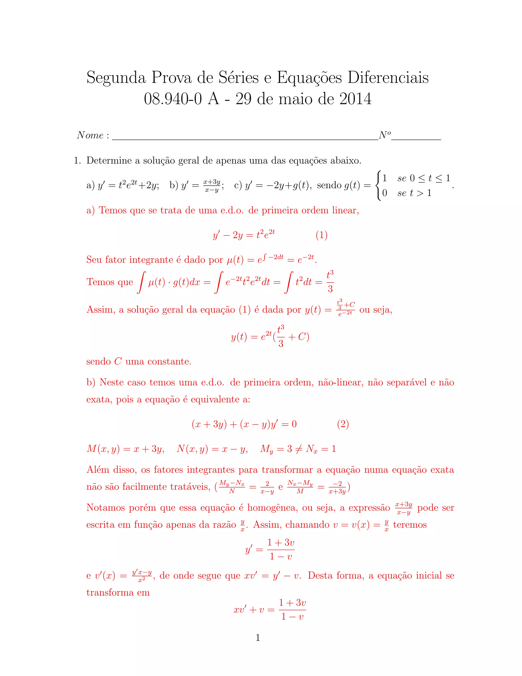 O documento apresenta resoluções de problemas de equações diferenciais ordinárias de primeira ordem e segunda ordem. São resolvidos problemas de valor inicial e determinada a solução geral de algumas equações diferenciais. Também é aplicada a lei de resfriamento de Newton para determinar o tempo para um café esfriar até uma temperatura específica.