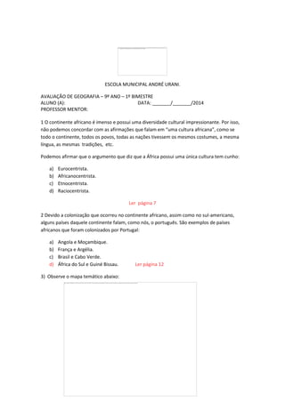 I. O documento discute a diversidade cultural da África e como afirmar que existe uma única cultura africana é etnocêntrico.