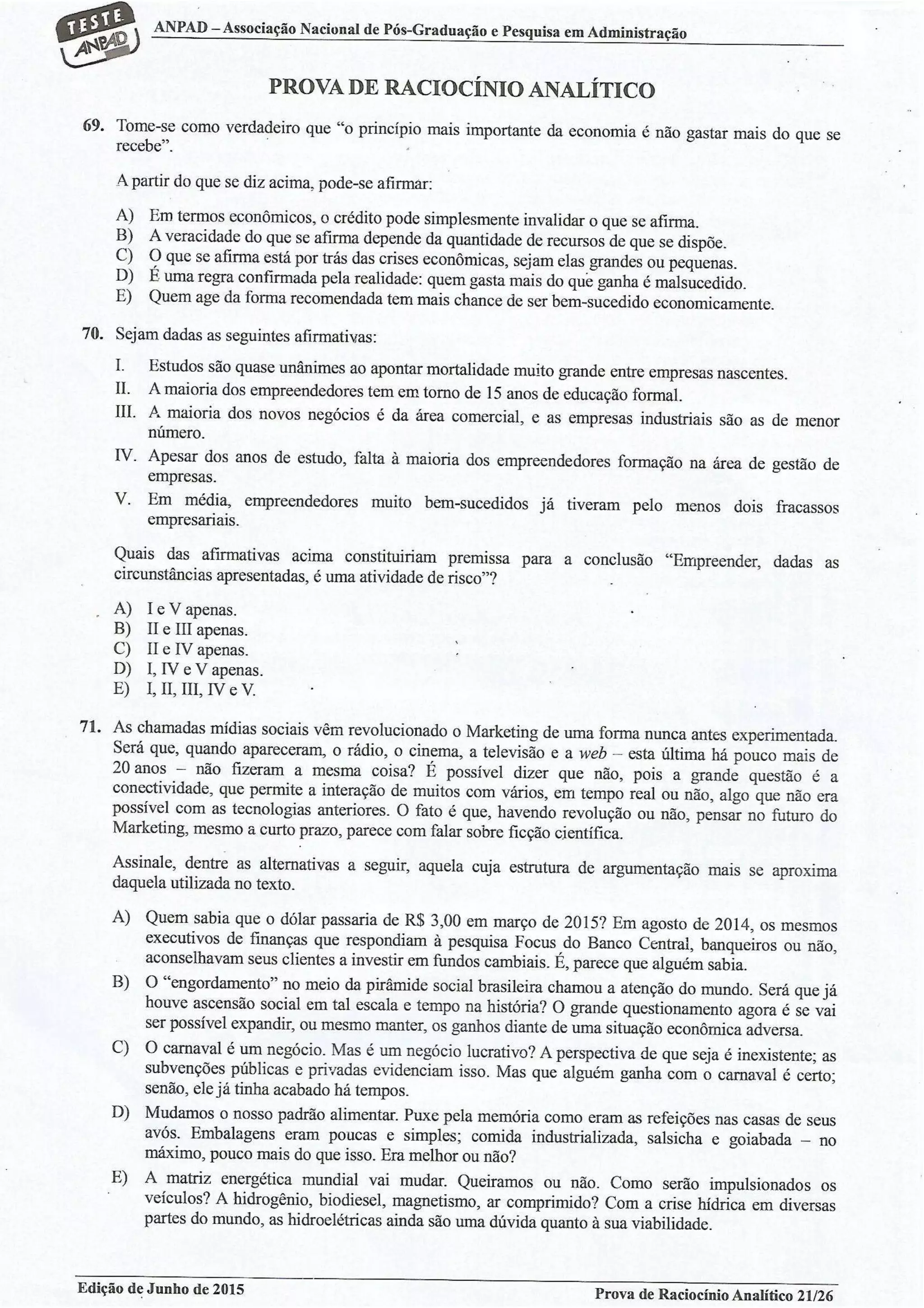 Teste ANPAD - Prova de Raciocínio Analítico Jul/2015
