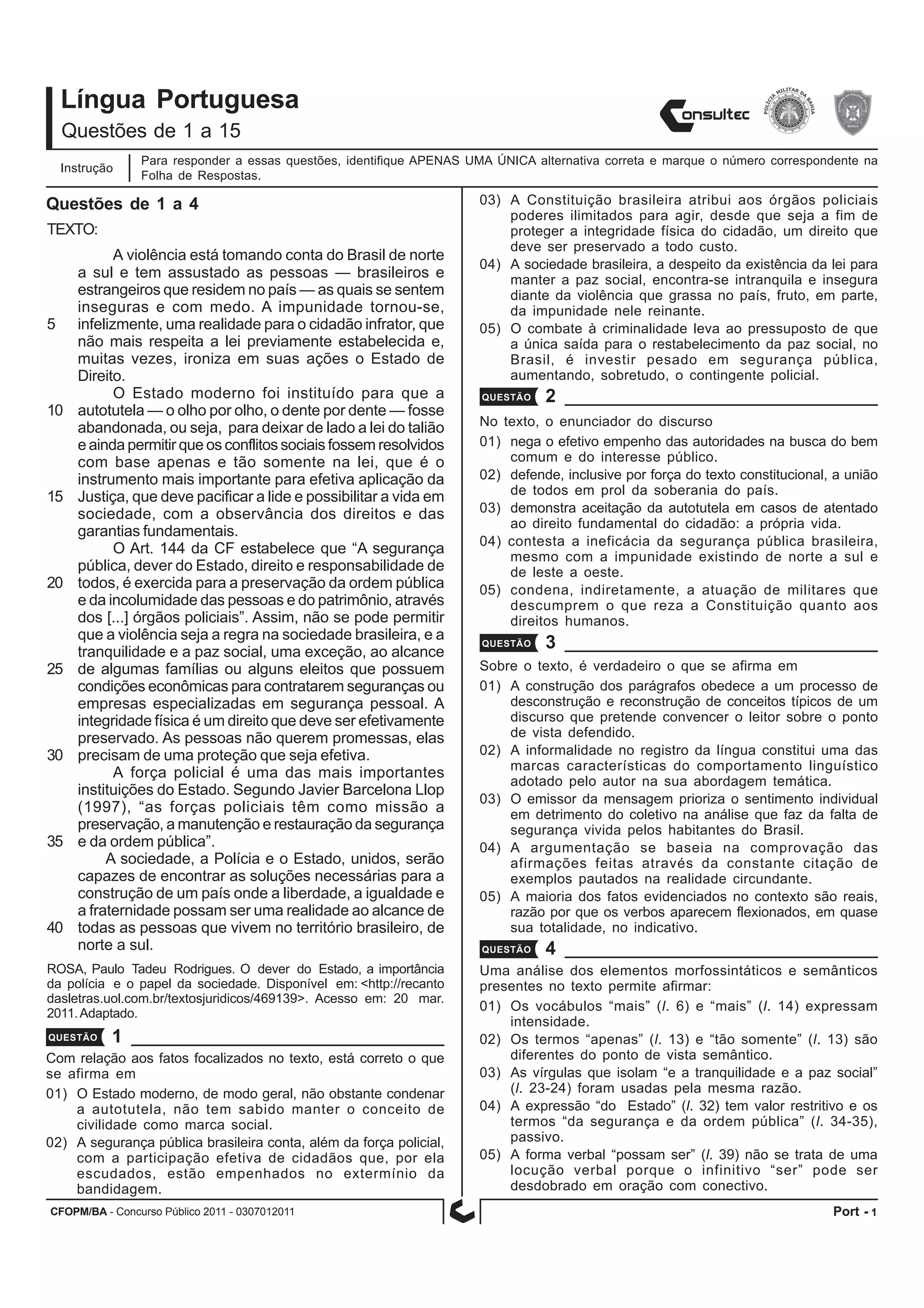 O documento discute a violência no Brasil e a necessidade de união entre a sociedade, polícia e Estado para garantir a segurança pública e construir um país onde liberdade, igualdade e fraternidade sejam reais para todos. Aborda também a importância da polícia para preservar a ordem pública de acordo com a Constituição.
