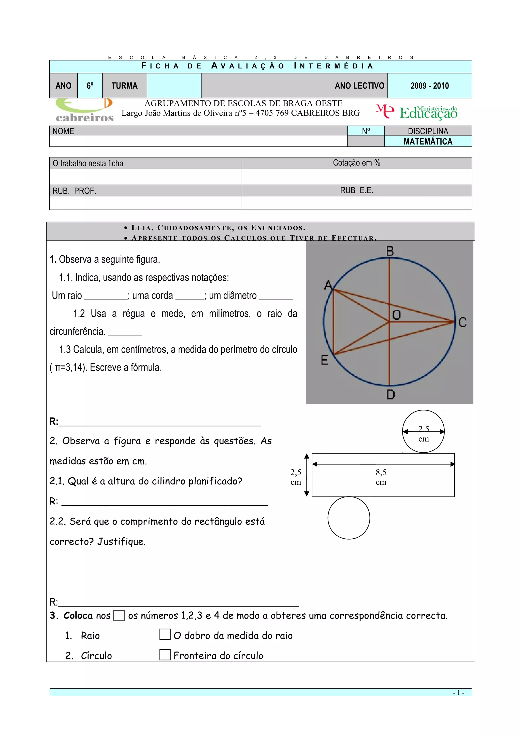 1.3 Calcula, em centímetros, a medida do perímetro do círculo
