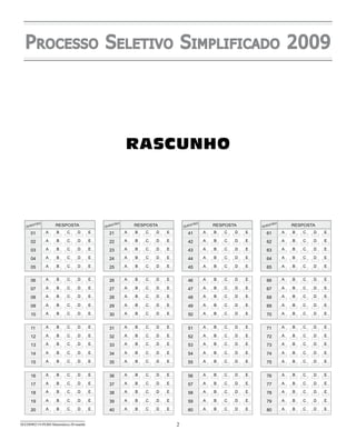 I. O documento descreve um processo seletivo simplificado para professores de educação básica da matemática no estado de São Paulo em 2009, incluindo instruções para preenchimento da prova objetiva e rascunho.