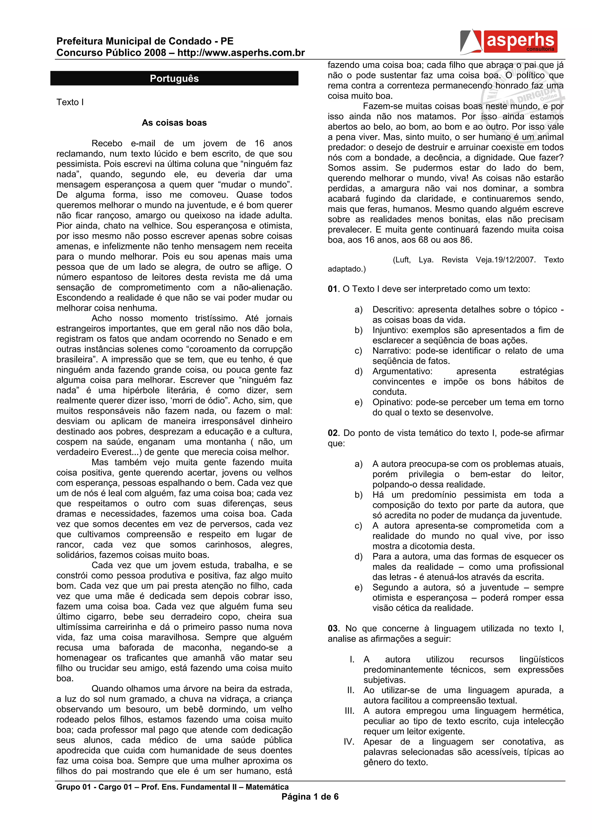O documento discute as "coisas boas" que as pessoas fazem no mundo e a importância de enfatizar os atos positivos, apesar dos problemas. A autora reconhece problemas sérios, mas argumenta que muitas pessoas fazem coisas boas e que vale a pena focar no que é bom.