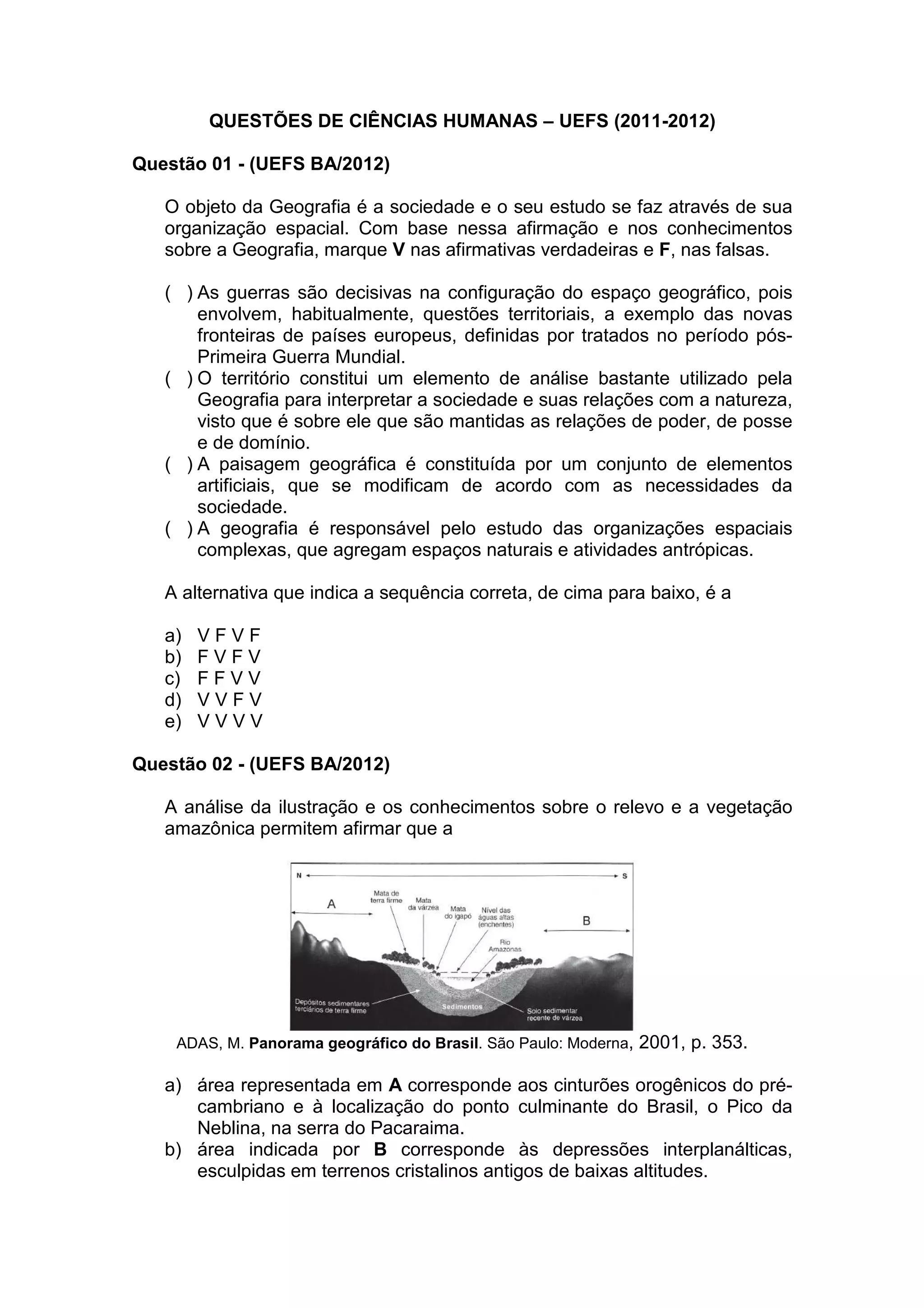 QUESTÕES DE CIÊNCIASHUMANAS – UEFS (2011-2012)