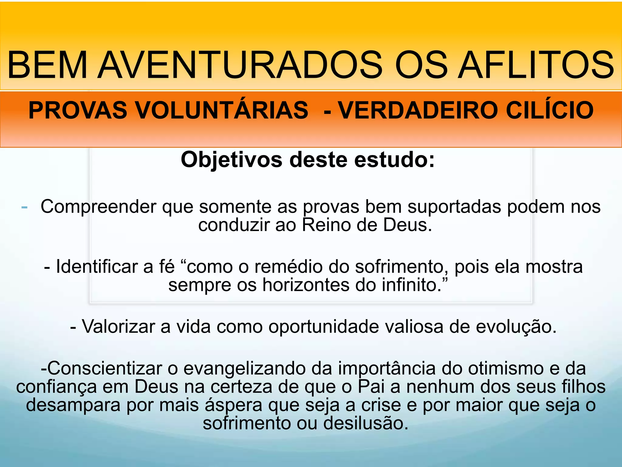 O documento discute os conceitos de cilício e provações, enfatizando que as verdadeiras provações são aquelas que nos ajudam a evoluir espiritualmente, como renunciar a algo para ajudar os outros, em vez de macerações físicas. Também ressalta a importância de aceitar as provações com fé e resignação, sem tentar escapar delas.