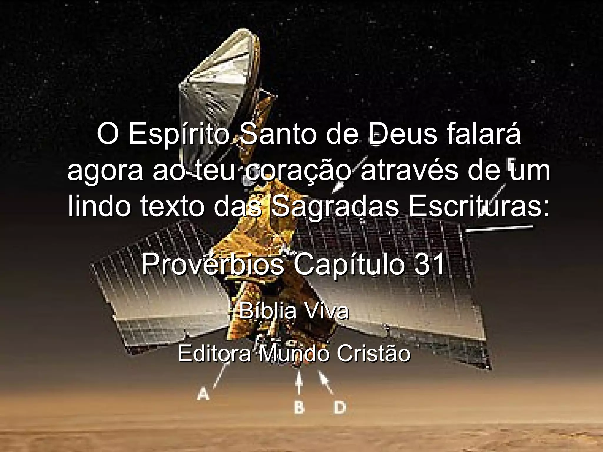O Espírito Santode Deus falará agora ao teu coração através de um lindo texto das Sagradas Escrituras: Provérbios Capítulo 31 Bíblia Viva Editora Mundo Cristão