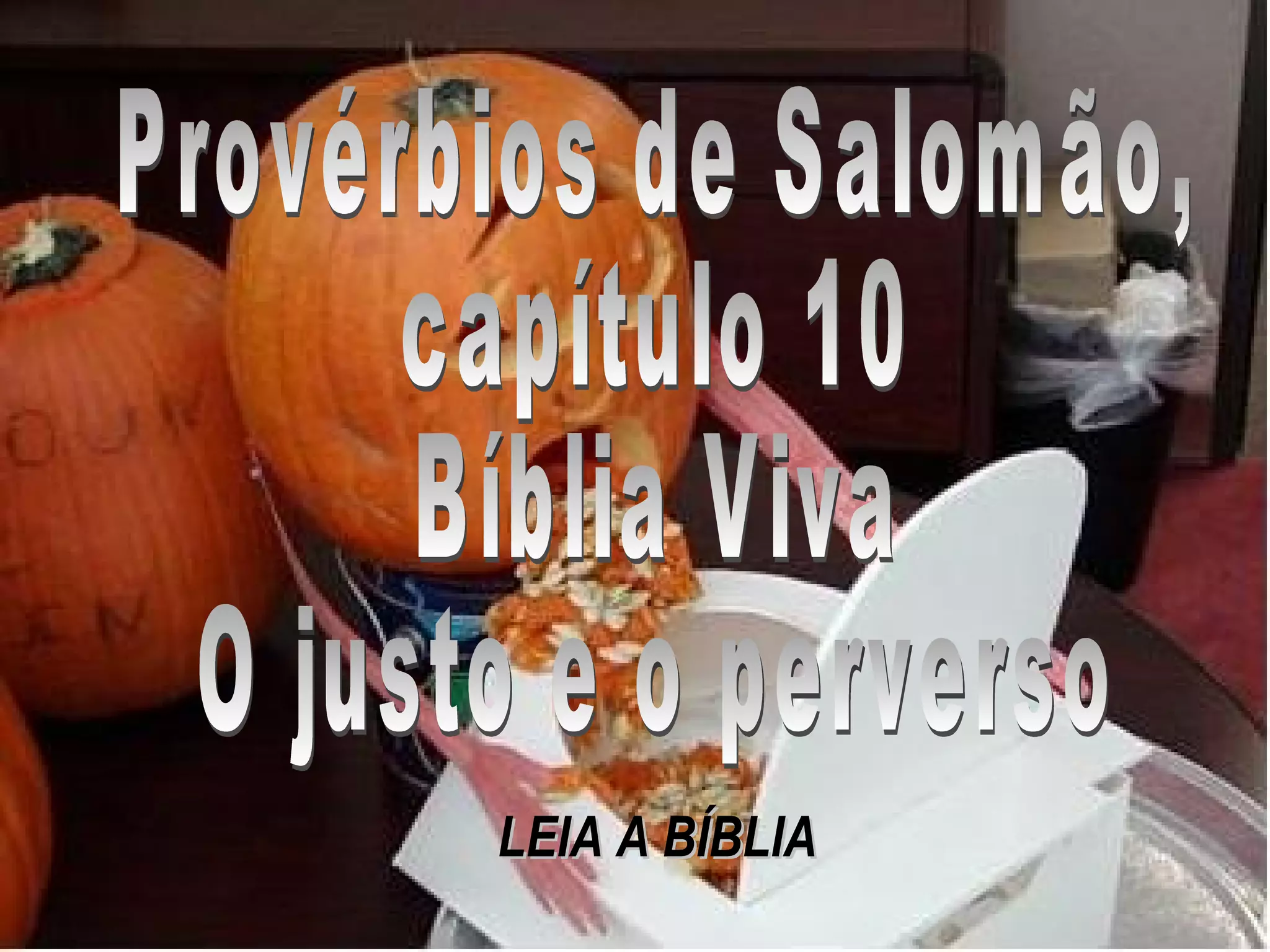 O capítulo 10 de Provérbios de Salomão contrasta o justo e o perverso, descrevendo as bênçãos do justo e os castigos do perverso. O capítulo descreve como o justo recebe proteção, riqueza e felicidade por meio de seu trabalho honesto, enquanto o perverso enfrenta fome, pobreza e destruição por causa de sua preguiça e maldade.
