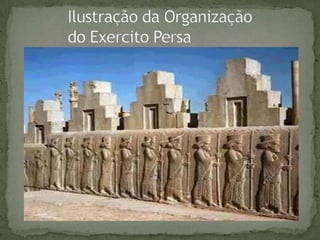 O documento descreve a história do Império Persa, desde seus primeiros habitantes em 2000 a.C. até sua queda sob o domínio de Alexandre, o Grande em 330 a.C. Detalha os fundadores Ciro, o Grande e Dario I, assim como as conquistas persas da Mesopotâmia e do Egito. Explora também aspectos culturais como a religião zoroastriana e influências artísticas de culturas vizinhas.