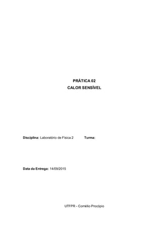 Este documento descreve um experimento sobre calor sensível realizado por estudantes. O objetivo era medir o calor específico do alumínio através da transferência de calor entre blocos de alumínio e água quente e fria. Foram medidas as massas dos materiais e suas temperaturas iniciais e finais para calcular o calor específico do alumínio. O valor encontrado diferiu do valor teórico, possivelmente devido a erros experimentais.
