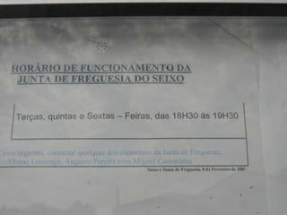O documento apresenta as propostas do Partido Socialista para várias áreas como obras, saúde, educação, economia e ambiente na freguesia. As propostas incluem melhorias nas infraestruturas como saneamento, estradas e abastecimento de água, mais apoio para o lar de idosos e instalações médicas, e iniciativas para promover a educação, o emprego e a sustentabilidade ambiental na comunidade.
