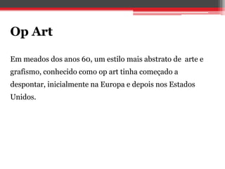 grafismo, conhecido como op art tinha começado a
