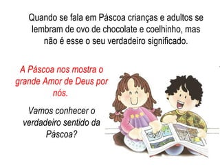 2) Explica que a Páscoa celebra o sacrifício de Jesus que morreu na cruz para pagar pelos pecados da humanidade.
