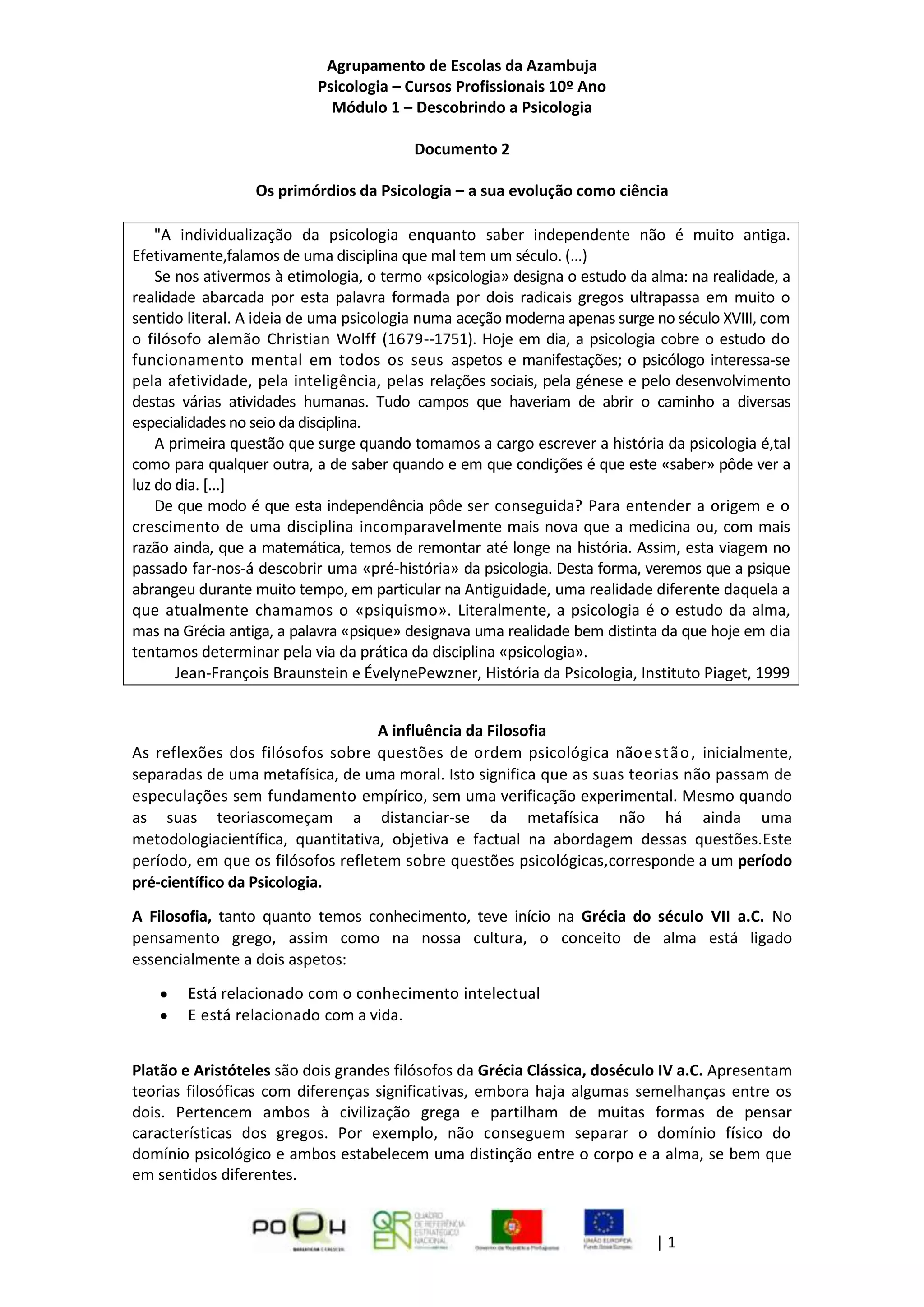 1) A psicologia emergiu como uma ciência independente apenas no século XIX, após séculos de reflexão filosófica sobre questões psicológicas.