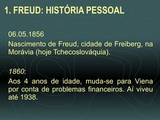Sigmund Freud foi um médico austríaco que fundou a psicanálise. Ele estudou com Charcot em Paris e desenvolveu técnicas como a associação livre e a interpretação dos sonhos. Freud acreditava que forças inconscientes influenciam o comportamento e que distúrbios mentais podem ser tratados por meio da terapia psicanalítica.