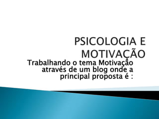 O documento discute a motivação através de um blog, esclarecendo conceitos e modelos de motivação de autores como Maslow e McClelland. As teorias de Maslow definem necessidades hierárquicas como fisiológicas, segurança, social, estima e realização. Já McClelland foca em necessidades de realização, afiliação e poder.