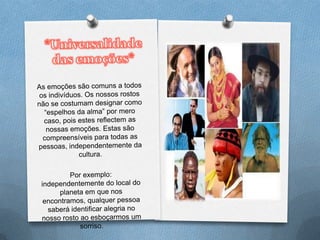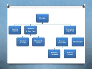 O documento aborda a cognição humana, destacando a diferença entre percepção e sensação, além da importância da memória nas funções psíquicas e na identidade. Explora os tipos de memória, como a de curto e longo prazo, e os processos de aprendizagem, enfatizando como estas capacidades estão interligadas e são afetadas por emoções e experiências. Também discute as emoções, sua classificação e componentes, sublinhando o papel das reações emocionais no comportamento humano.