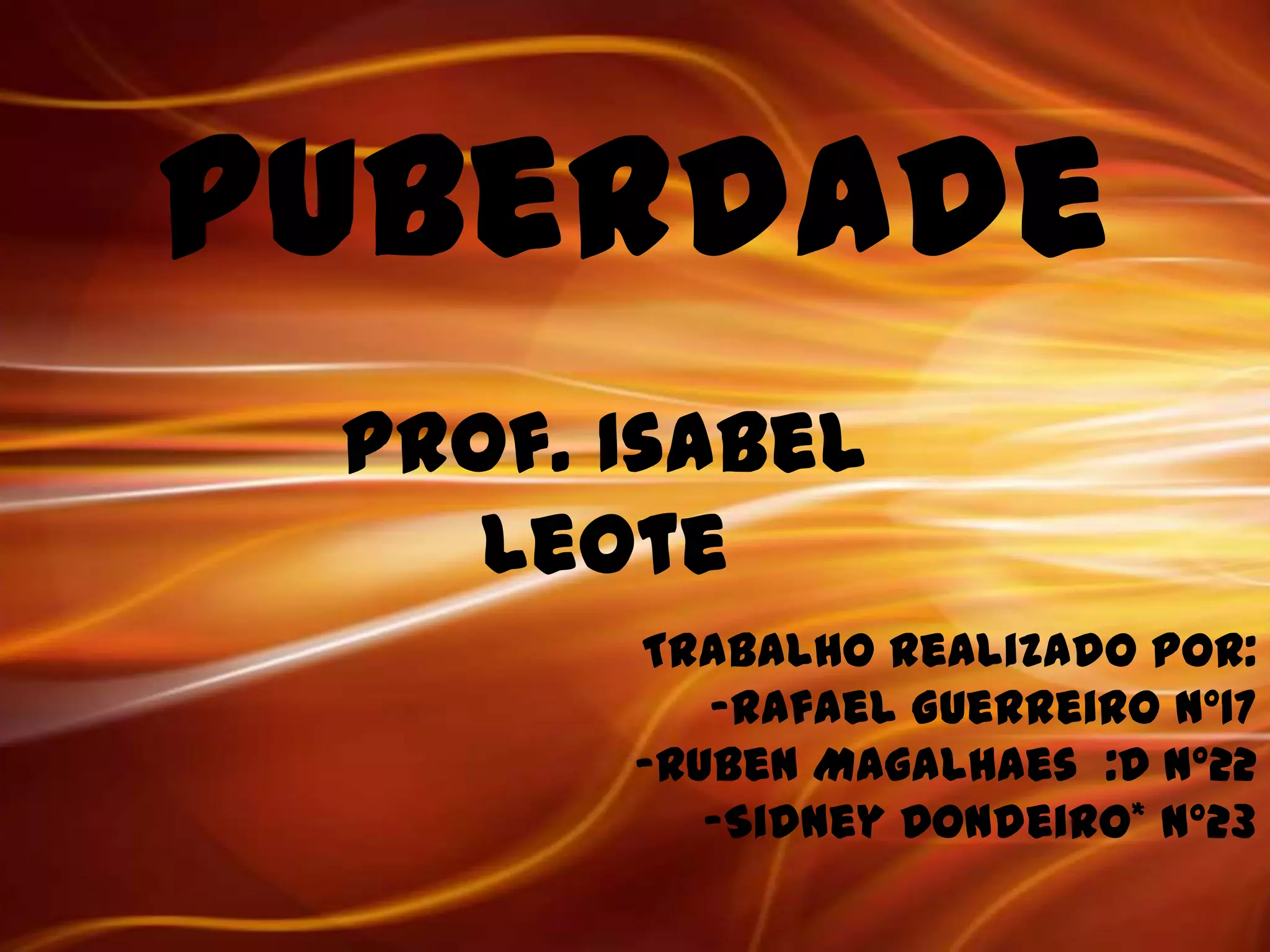 O documento descreve as características da puberdade masculina, incluindo o surgimento de pelos nos púbis e axilas, o aumento dos testículos e pênis, o crescimento da barba, a voz grossa, ombros mais largos e aumento da massa muscular durante esta fase da vida dos meninos.