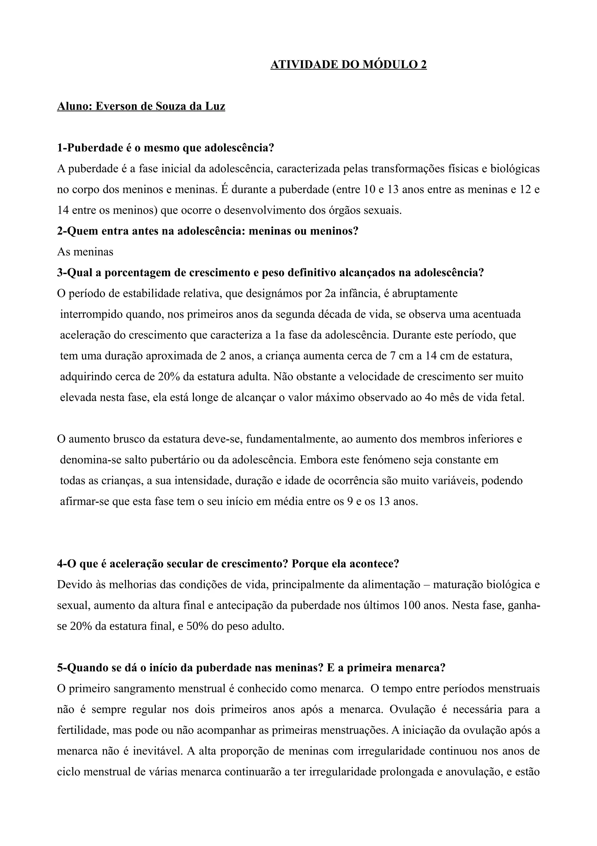 O documento discute as transformações físicas e emocionais da puberdade e adolescência. Ele explica que a puberdade marca o início da adolescência, com desenvolvimento dos órgãos sexuais entre 10-14 anos. As meninas entram na puberdade antes dos meninos. Durante a adolescência, ganha-se 20% da estatura final e 50% do peso adulto.