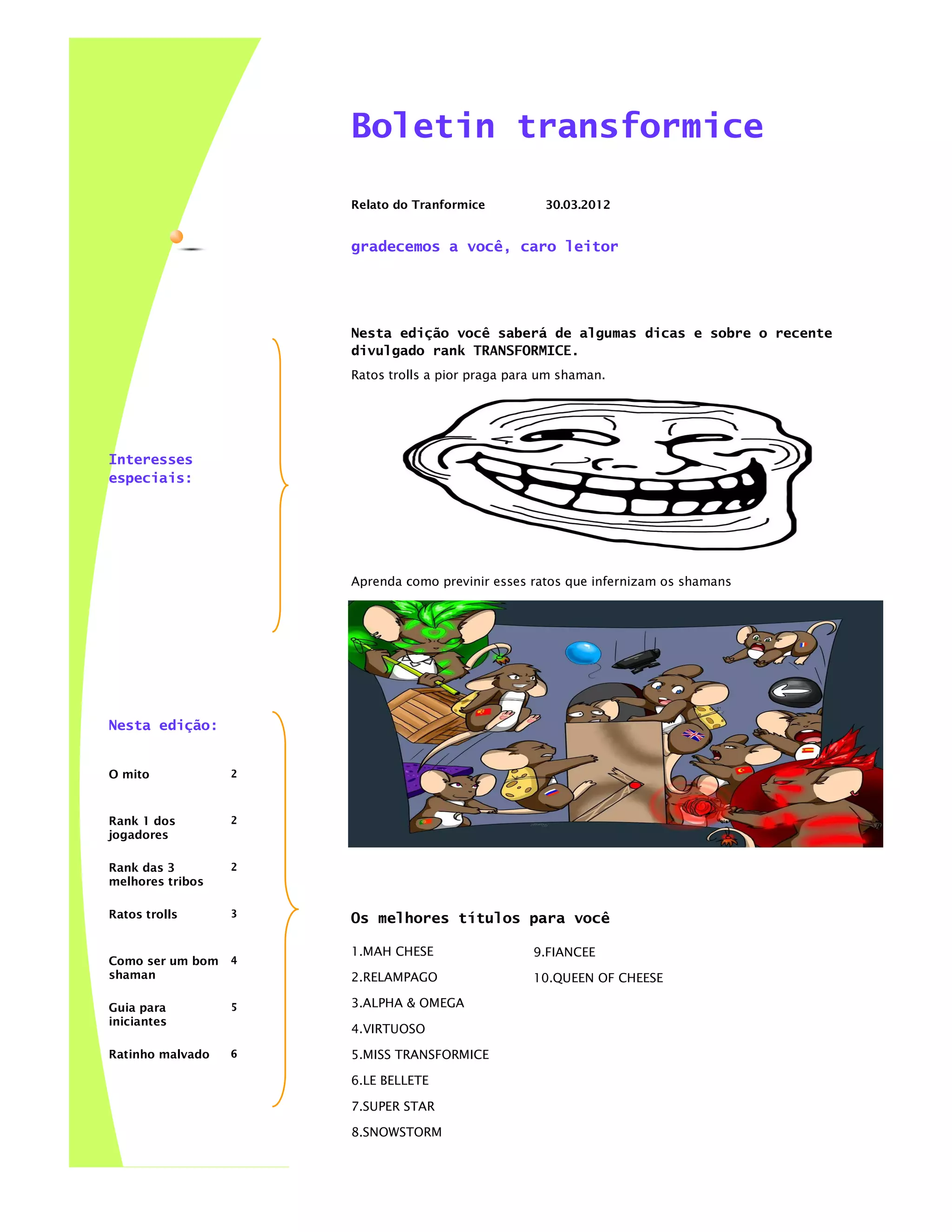 3) O artigo dá dicas para shamans lidarem com ratos trolls e iniciantes evitarem matar suas almas gêmeas.