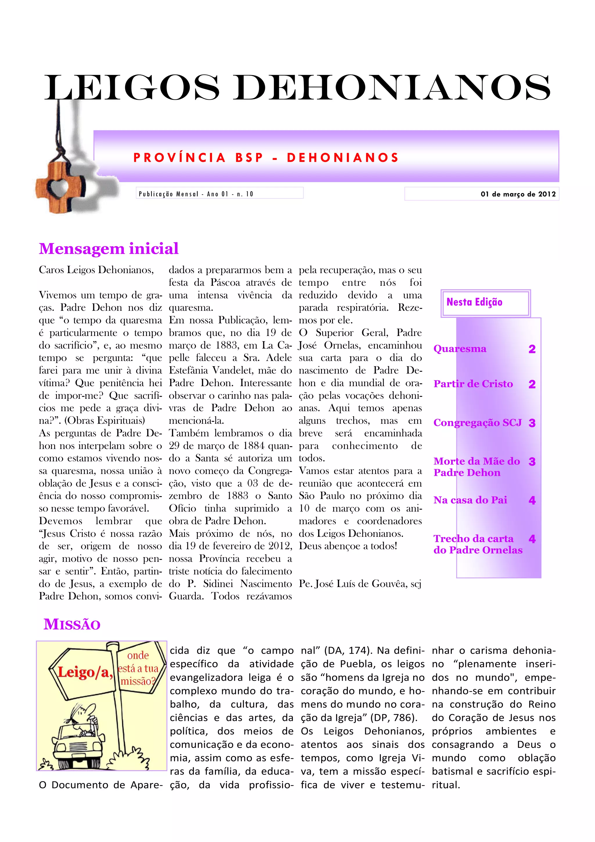 2) A morte da mãe do Padre Dehon em 19 de março de 1883, descrita como uma mulher cristã exemplar.