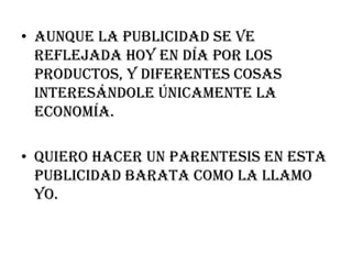 O documento discute como a publicidade pode ser usada não apenas para promover produtos, mas também para promover a paz e a harmonia entre países vizinhos, como a Venezuela e a Colômbia. O autor argumenta que a publicidade deve ser empregada para propor paz entre os presidentes desses países e encorajar o povo de cada nação a trabalhar juntos para o bem comum.