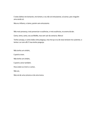 O poema descreve o desejo do eu lírico por prazer e amor personificado pelo Prince, mas também expressa sentimentos de solidão, culpa e cansaço. O poema usa imagens de um lince faminto e metáforas sobre trens e destinos desconhecidos para explorar temas de desejo, perda e auto-reflexão.