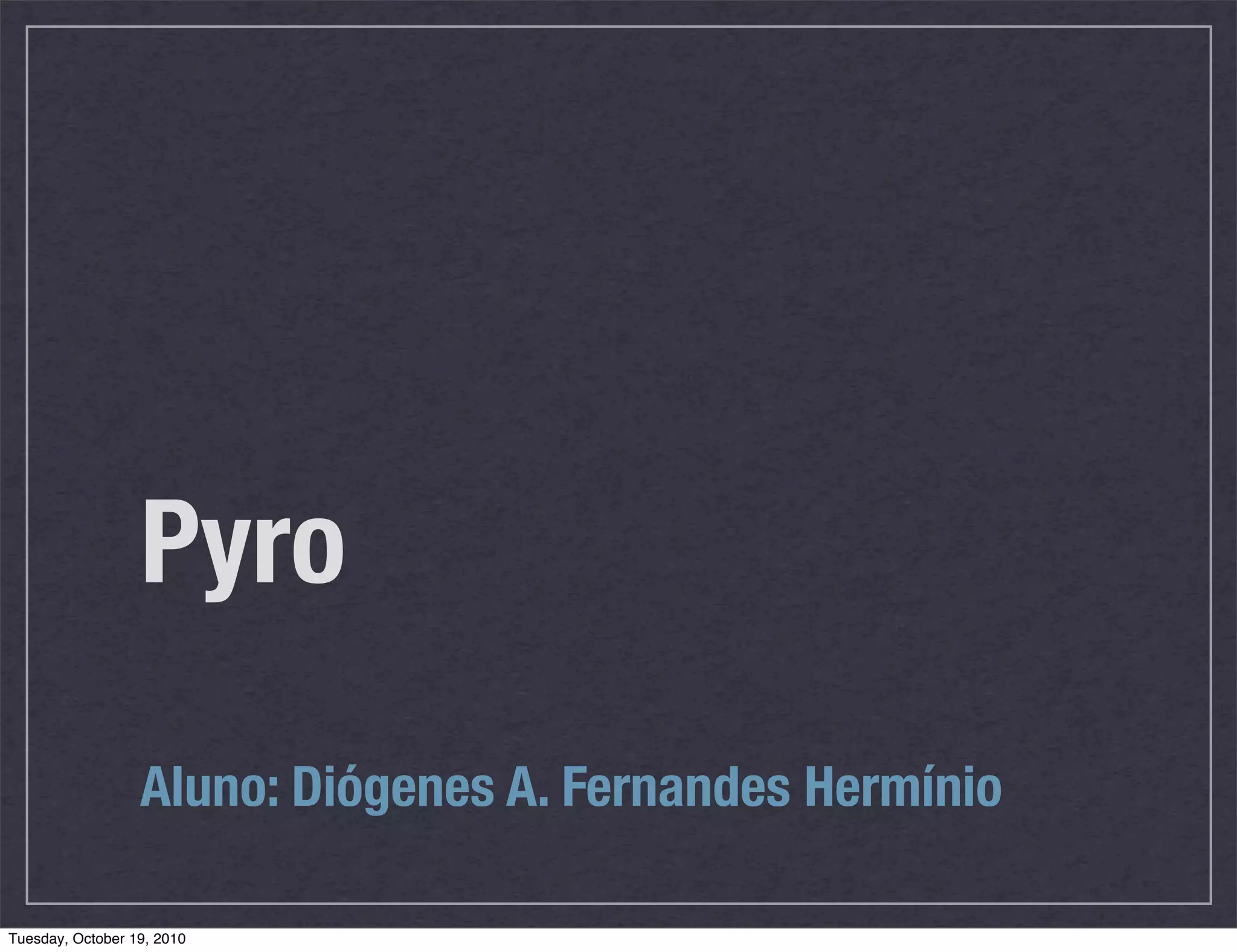 PYro é uma biblioteca Python que permite a comunicação remota entre objetos Python através de um modelo cliente-servidor. Ele usa um NameServer central para registrar objetos remotos e permite que clientes recuperem referências a esses objetos e interajam com eles como se fossem locais, apesar de serem executados em máquinas diferentes. O protocolo de comunicação é baseado em pickle e TCP/IP.