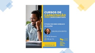 O documento apresenta uma palestra sobre Python, incluindo sua origem, estrutura, compilação e aplicações. O objetivo é mostrar diversas possibilidades da linguagem Python através de exemplos. As principais aplicações discutidas incluem testes de software, análise de pacotes de rede, processamento de áudio e imagem e ciência de dados.