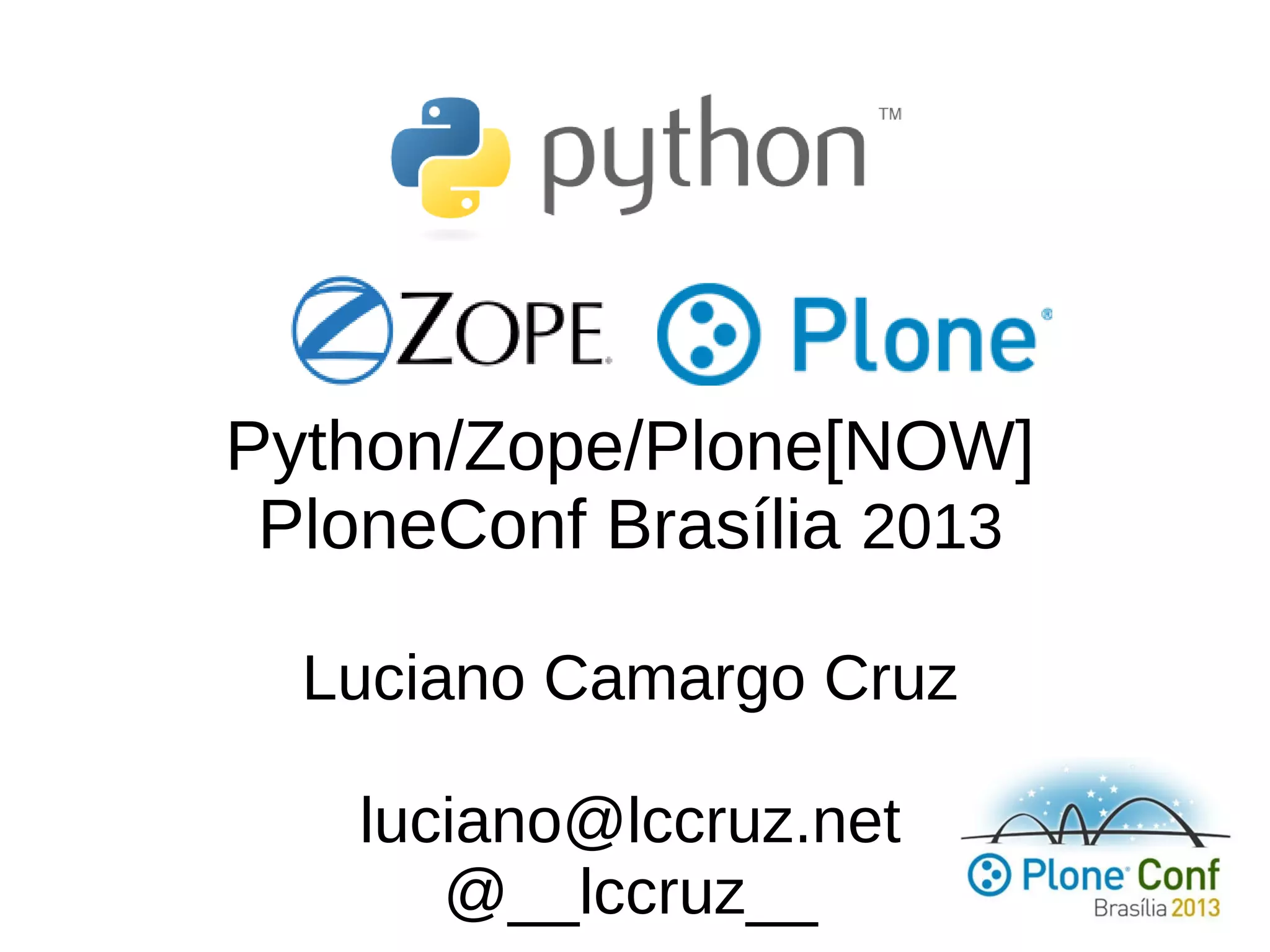 O documento apresenta informações sobre a comunidade Python e suas ferramentas associadas, como Zope e Plone. Destaca a importância do Python como uma linguagem de programação versátil e de fácil aprendizado, além de uma breve história e utilidade da plataforma Zope e do CMS Plone. Também menciona eventos, conferências e recursos relacionados às comunidades de desenvolvedores envolvidos.