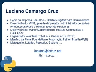 O documento apresenta informações sobre especialistas em desenvolvimento e pesquisa em Python, incluindo suas experiências e projetos em diversas áreas como computação gráfica, redes e inteligência artificial. Os autores destacam a importância do Python na velocidade de desenvolvimento e facilidade de aprendizado. Diferentes projetos e soluções criadas pelos autores são descritos, mostrando a aplicação prática da linguagem em problemas reais.