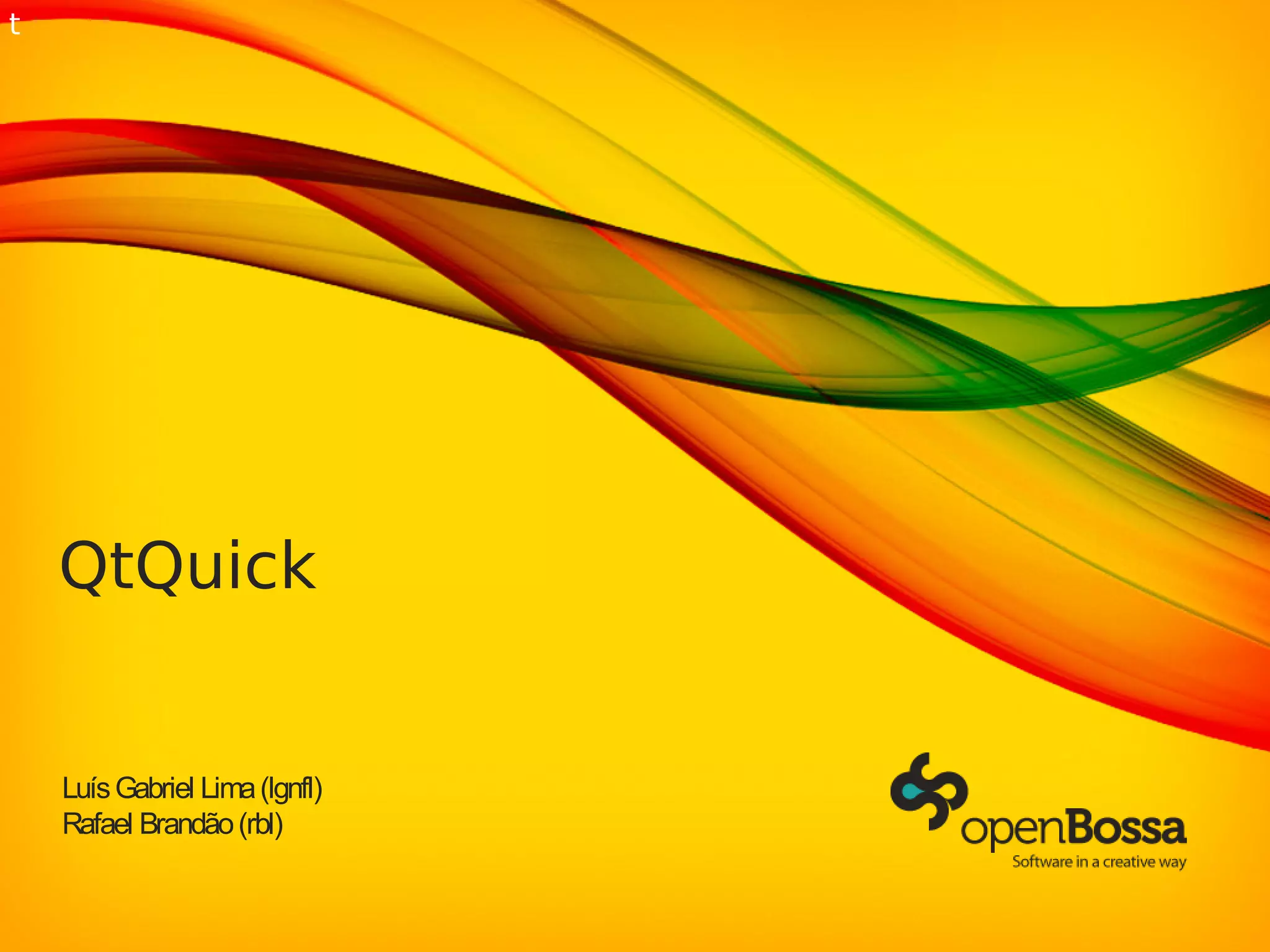 O documento apresenta uma introdução ao framework Qt e à linguagem QtQuick. Resume os principais pontos sobre o que é o Qt, sua arquitetura, o que é o QtQuick, como funciona a linguagem QML e considerações finais sobre recursos adicionais.