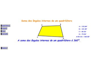 2) A soma das amplitudes dos ângulos internos de um quadrilátero é igual a 360°.