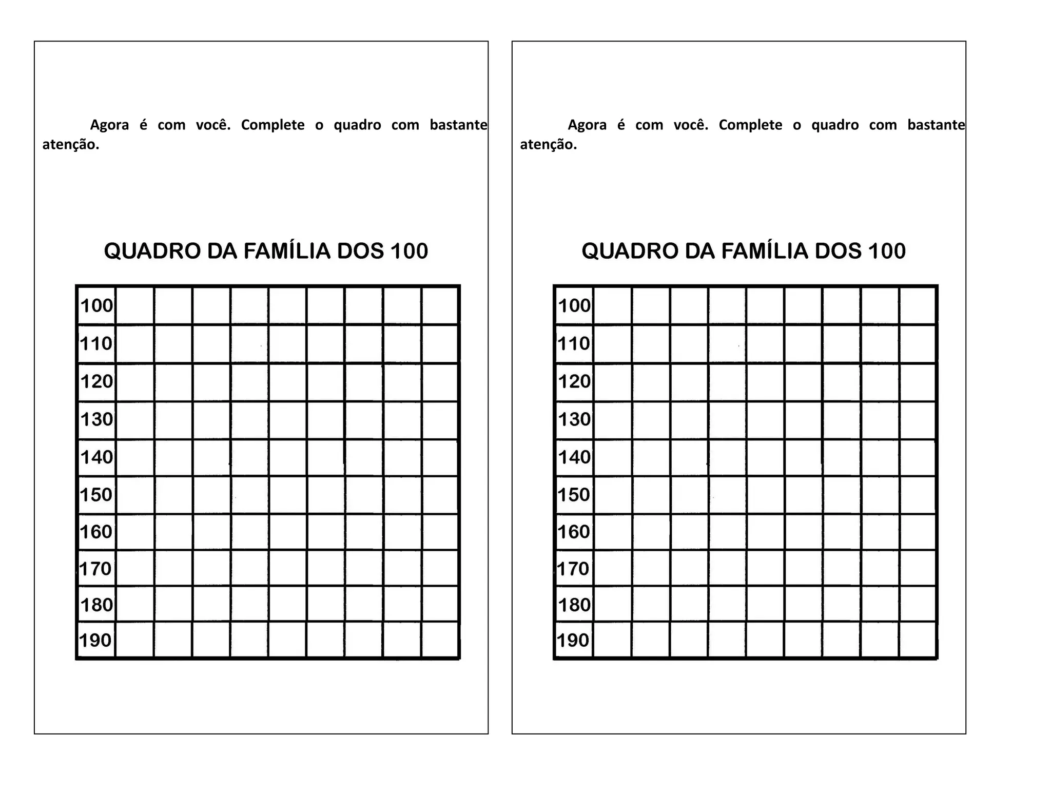 Complete o quadro da centena com os números que estão faltando ...