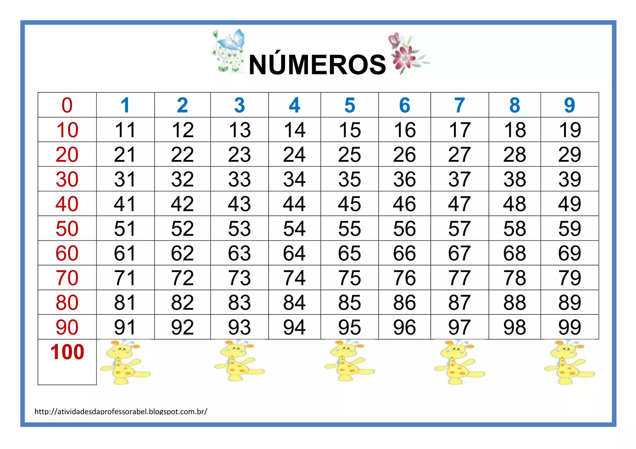 Tabela de números de 1 a 100