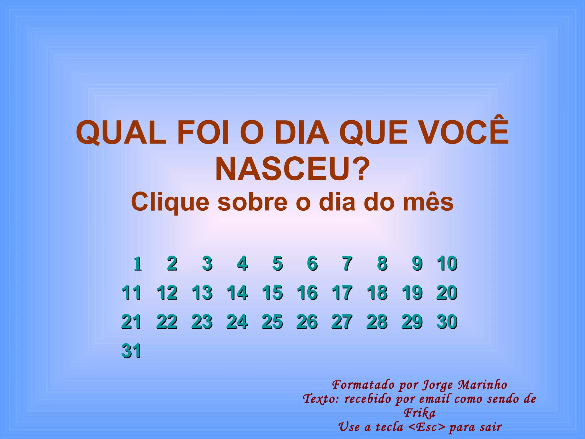 O documento fornece descrições astrológicas dos significados associados a cada um dos dias do mês. Cada dia é associado a características de personalidade, áreas de trabalho adequadas e possíveis desafios. O dia 11 é descrito como o dia da harmonia, associando pessoas nascidas neste dia a serem pacificadoras, sensíveis e talentosas em áreas criativas.