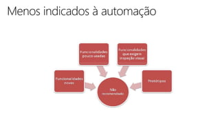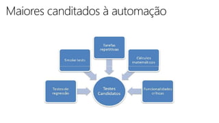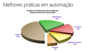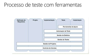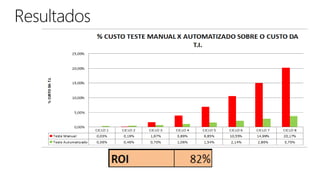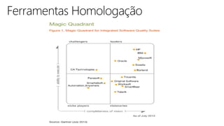O documento apresenta conceitos de qualidade, processos e técnicas de qualidade de software, incluindo Six Sigma para software. Aborda ferramentas de teste de software, melhores práticas em automação e controle de qualidade, além de conceitos sobre pessoas e resultados.