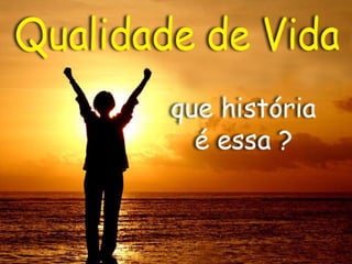 O documento discute os conceitos de nível de vida, estilo de vida e qualidade de vida. A qualidade de vida está ligada ao quanto se usa e aproveita os recursos disponíveis e depende de saber direcioná-los com sabedoria. Não importam circunstâncias atuais, mas sim o que se tem agora e como se usa com determinação.