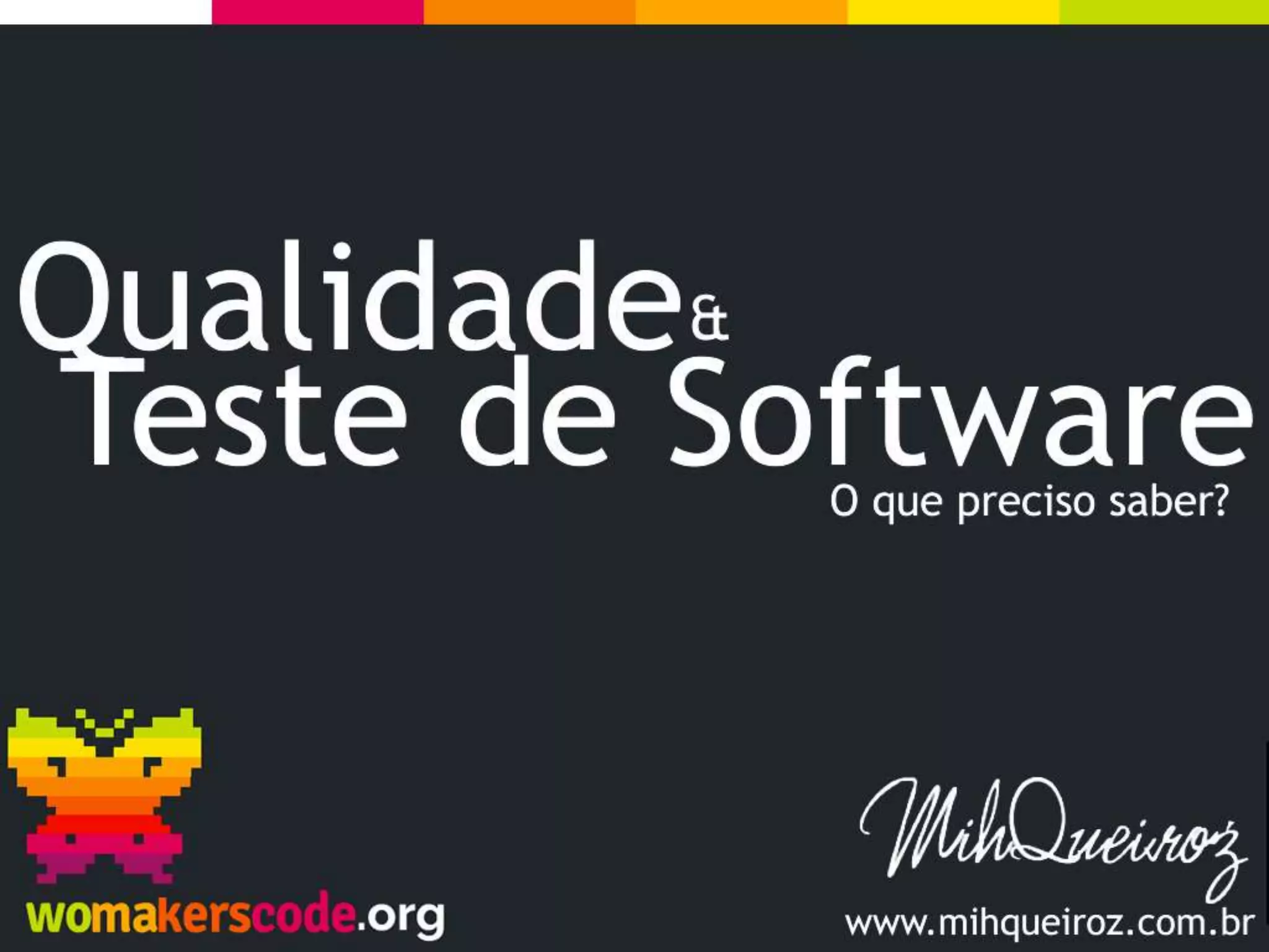 O documento apresenta informações sobre Kamilla Queiróz, incluindo sua formação acadêmica e experiência profissional. Também discute conceitos relacionados à qualidade e teste de software, como a definição de qualidade, os tipos de custo da qualidade, a importância dos testes e as etapas do ciclo de vida de desenvolvimento de software.