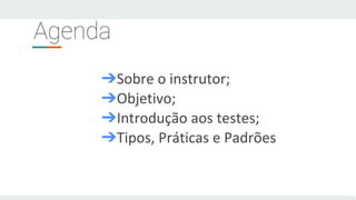 3) A importância de testar os próprios testes através de técnicas como teste de mutação.