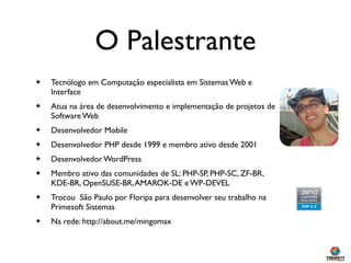 ✦ Membro ativo das comunidades de SL: PHP-SP, PHP-SC, ZF-BR,
