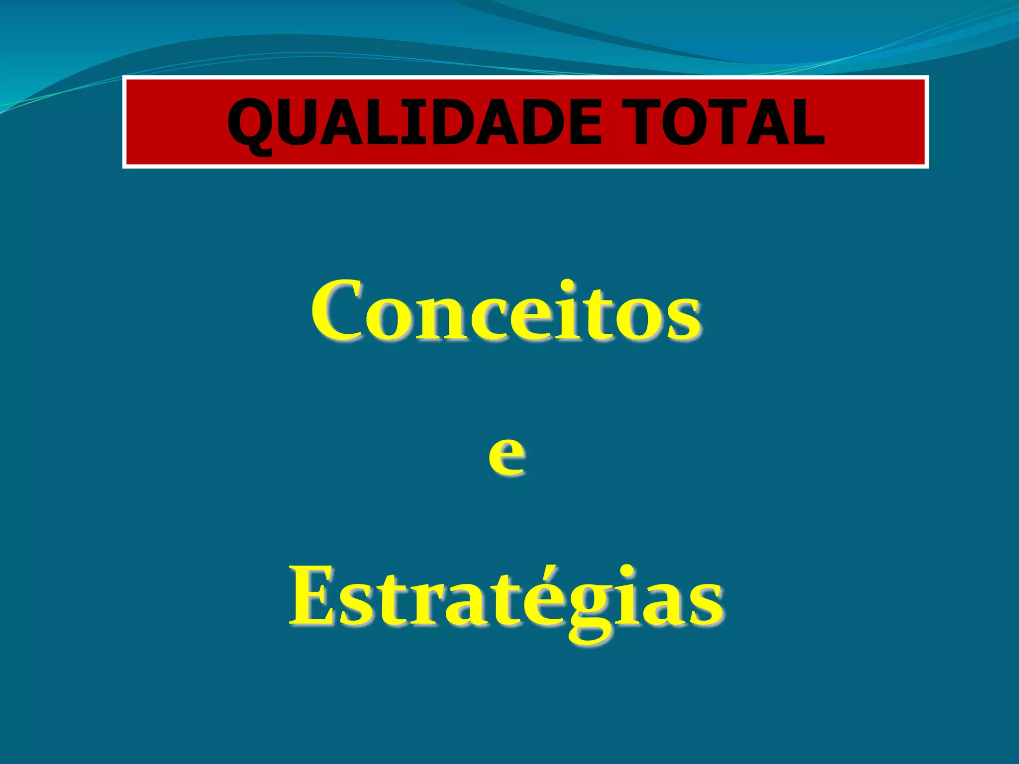 O documento discute conceitos e estratégias de qualidade total. Apresenta definições de qualidade segundo Juran e Deming, enfatizando a importância de atender às necessidades dos clientes. Também discute os princípios da qualidade total, como satisfação total dos clientes, gerência participativa e desenvolvimento de recursos humanos. Apresenta ainda o conceito PDCA e normas ISO para certificação de qualidade.