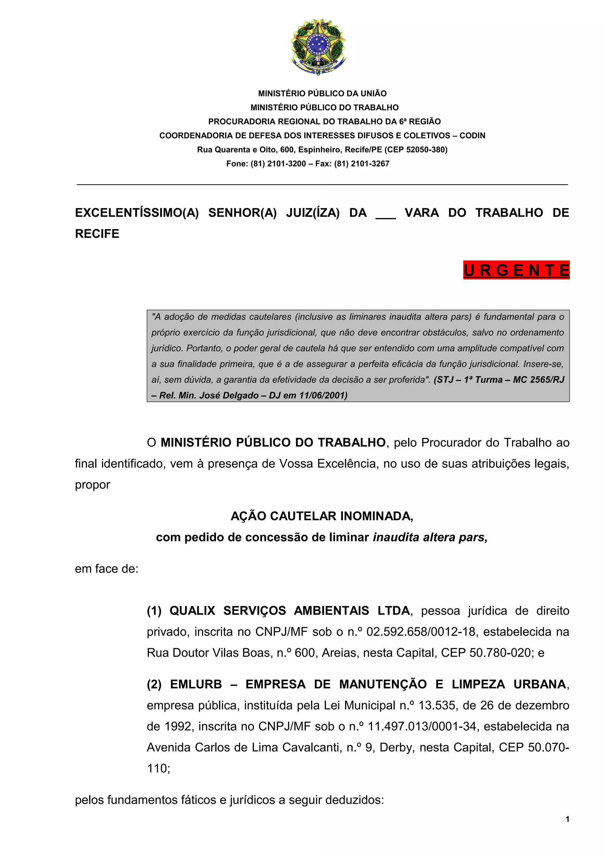 1) O documento descreve a disputa entre a Qualix Serviços Ambientais Ltda e a Emlurb sobre a prorrogação do contrato de coleta de lixo em Recife.