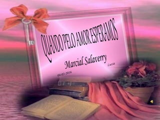 Este poema descreve a ansiedade e o desejo de esperar pelo amor. A pessoa sente vontade pelo beijo da pessoa amada e fica imaginando sua chegada, o que aquece o coração. A espera pelo encontro com quem se ama inflama a imaginação e é uma sensação agradável, ainda que ansiosa. O autor é um brasileiro nascido em 1938 que começou a escrever poemas após se aposentar.