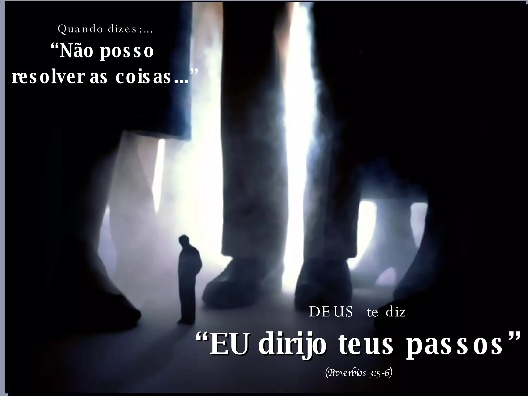 O documento lista várias situações em que as pessoas dizem que não podem resolver problemas ou que estão com medo, cansadas ou se sentem sozinhas, e apresenta respostas bíblicas de Deus prometendo direcionar os passos, permitir que tudo seja possível, não deixar ou desamparar, capacitar a fazer tudo e oferecer descanso, amor e ensino do caminho.